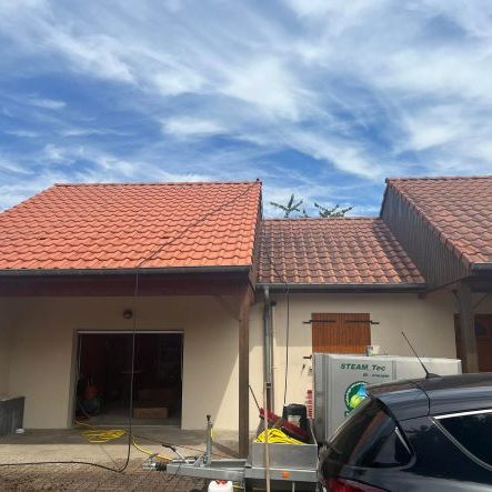 Nettoyage d’une façade, terrasse et d’un store à la vapeur basse pression 100% bio et traitement hydrofuge